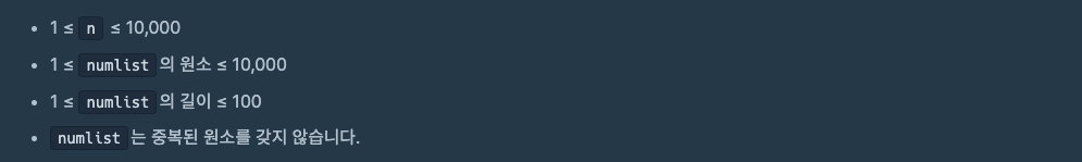 - numlist의 각 원소에서 n을 뺀 절대값을 포함한 2차원 배열 생성