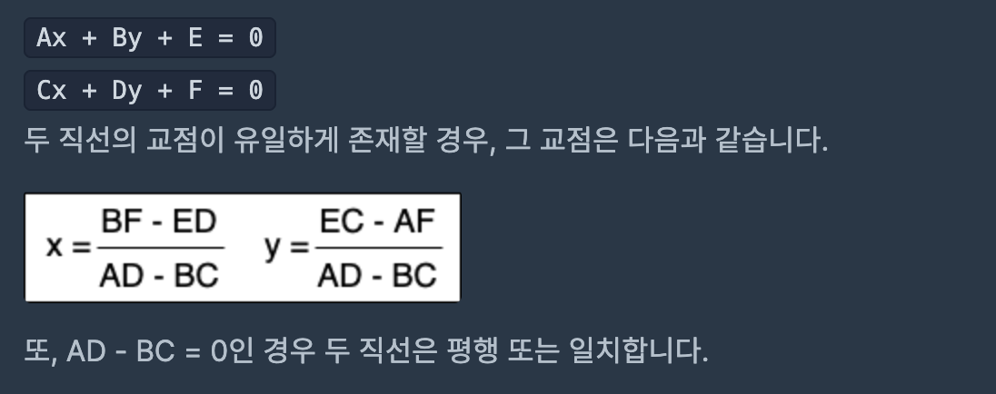 # 새로운 x, y 좌표가 정수일 경우만 교점으로 간주