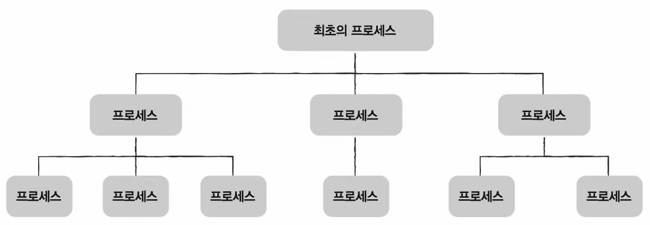 위 사진을 보면 루트 프로세스(1번 프로세스)에서 모든 프로세스가 뻗어나가는 걸 확인할 수 있다.